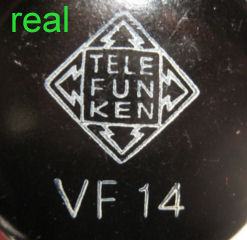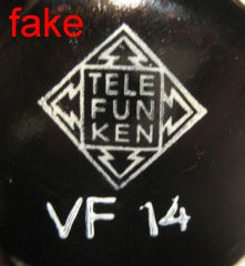 Fake VF14: These tubes look exactly like real VF14 and they usually come in original Telefunken boxes, sometimes even "sealed". Serial/batch numbers on the box correspond nicely to the numbers on the tubes. The seller offers the tube in excellent condition and often even with a "return warranty".