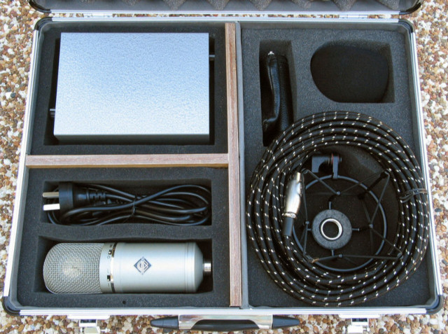 The mic comes complete in a metal transport case with power supply, cable,